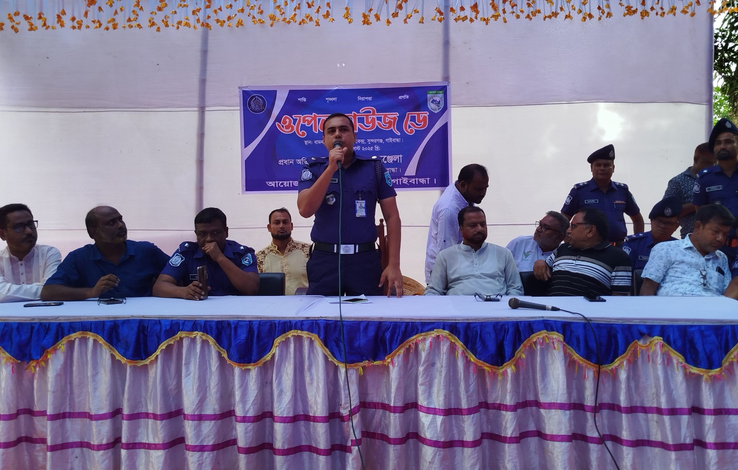 গাইবান্ধার সুন্দরগঞ্জ থানায় বৃহস্পতিবার (২৮ আগস্ট) সকাল ১১টায় ওপেন হাউজ ডে অনুষ্ঠিত হয়েছে। এতে প্রধান অতিথি হিসেবে উপস্থিত ছিলেন রংপুর মেট্রোপলিটন পুলিশের অতিরিক্ত পুলিশ কমিশনার বিদ্রোহ কুন্ড।
